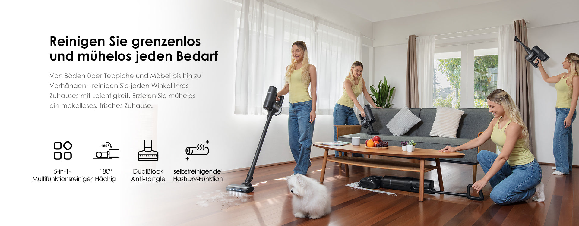 Switch S7 Stretch:史上最強的一機五用, 智慧洗地機、無線吸塵器、床褥清潔刷、長柄+短把的無線隨手吸。全家的清潔,有一台就搞定!